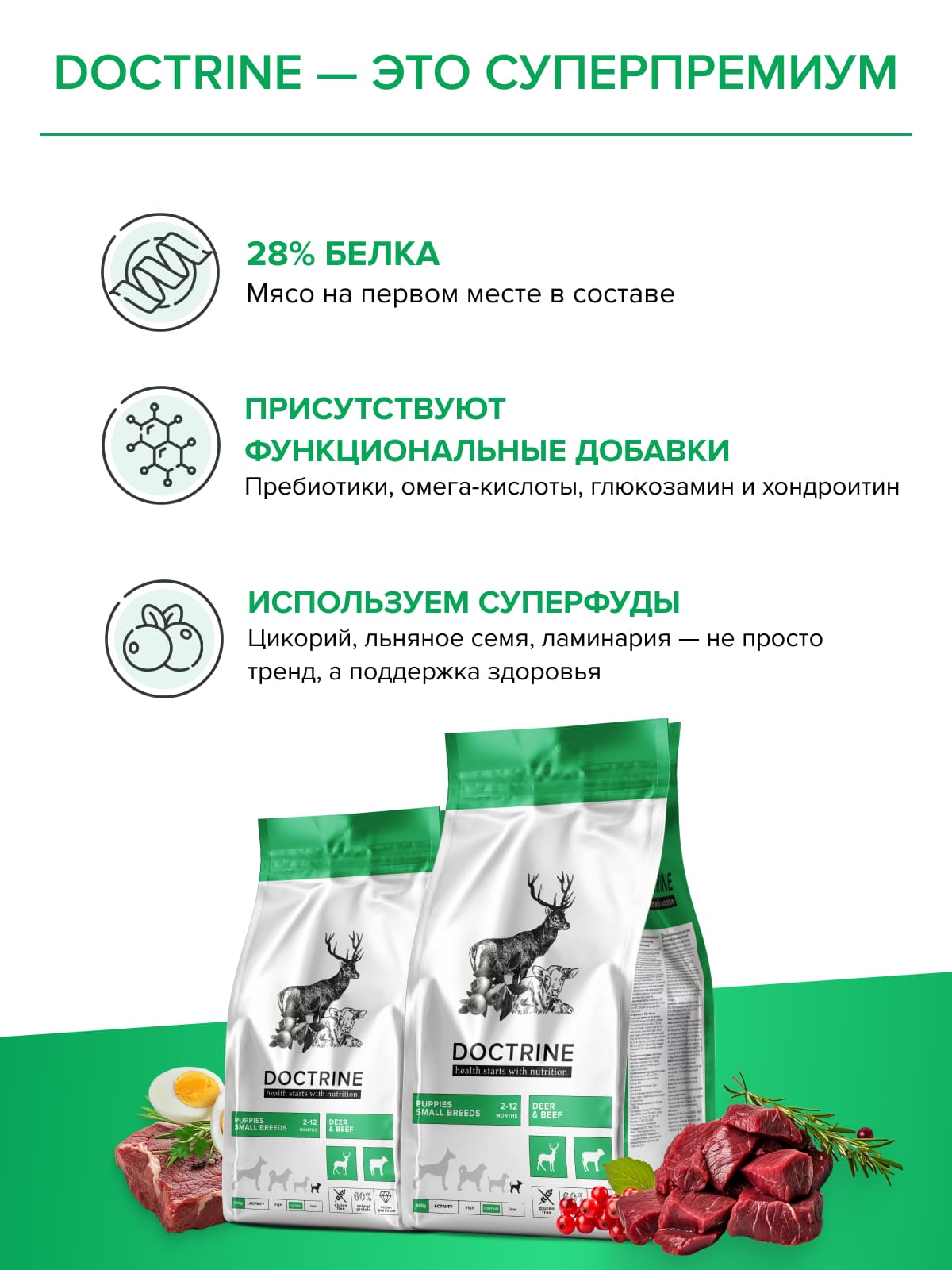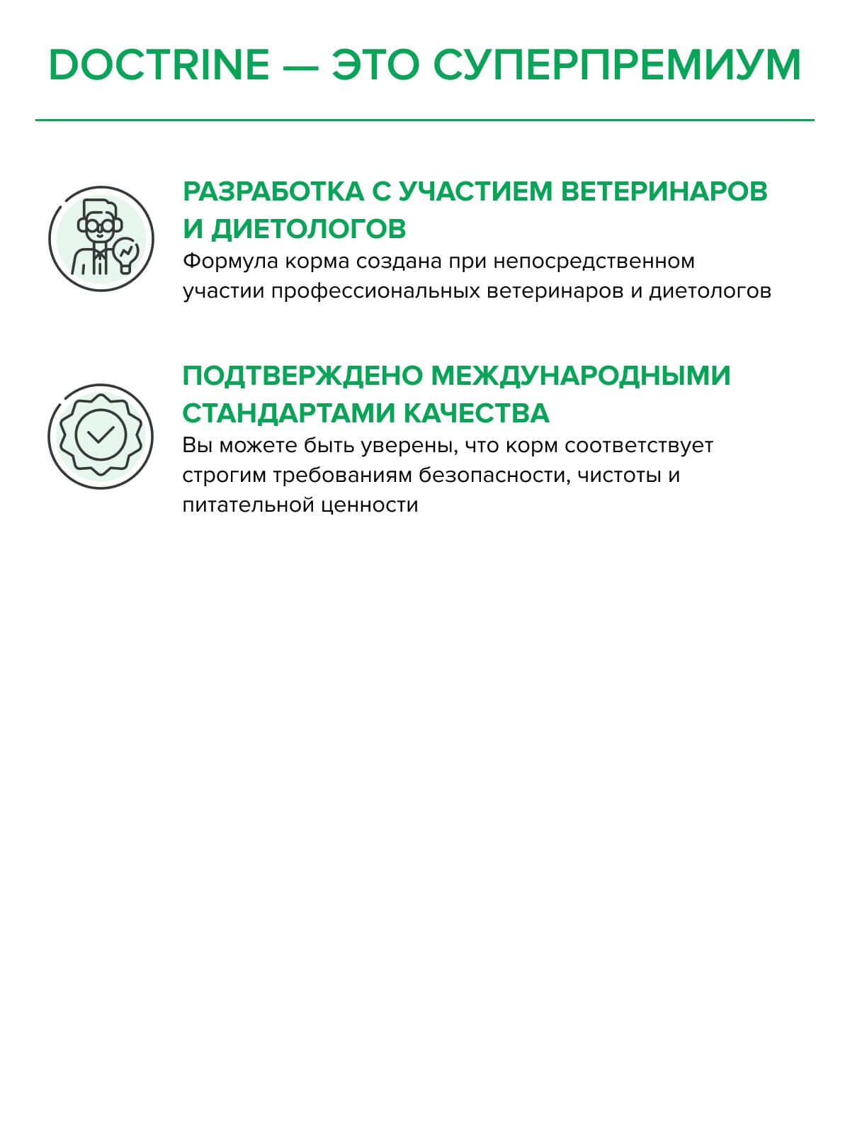 С рационом DOCTRINE Ваш маленький друг получит сильный иммунитет, крепкие кости и здоровые суставы, полноценное развитие и безупречный внешний вид.