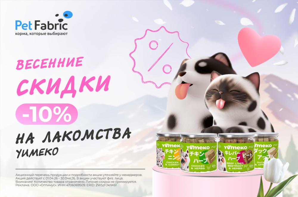 —10% скидка на лакомства YUMEKO весь апрель