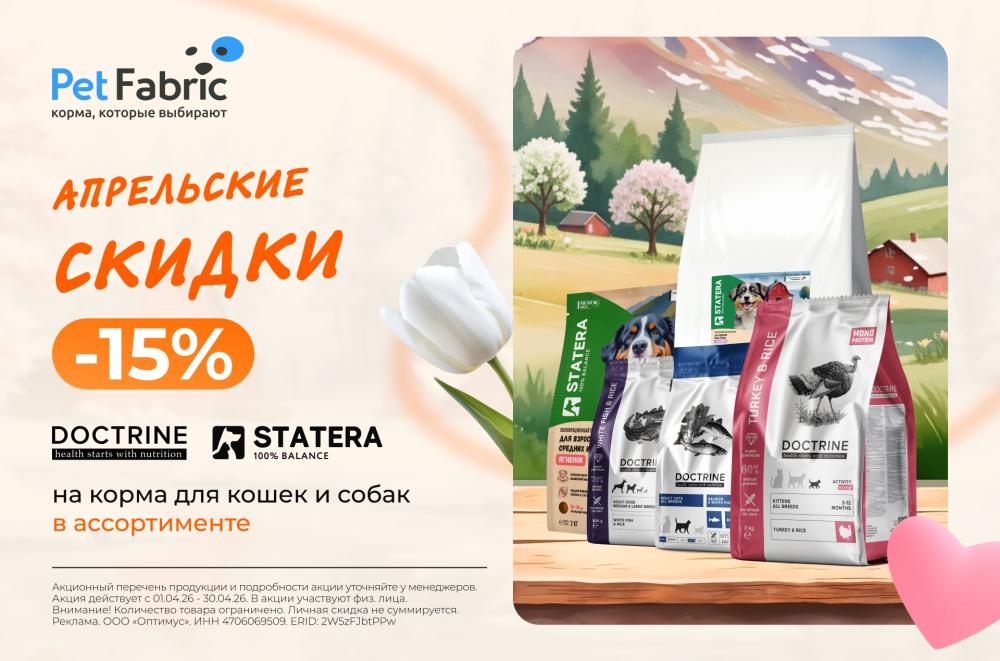 —15% скидка на сухие корма DOCTRINE и STATERA весь апрель