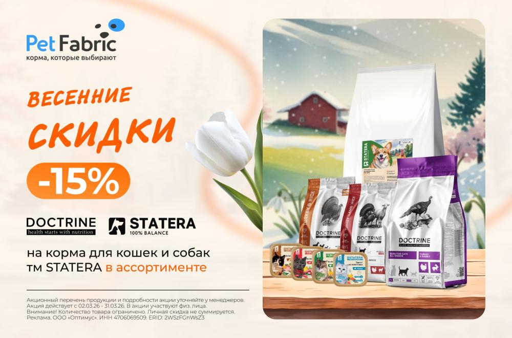 —15% скидка на сухие и влажные корма DOCTRINE и STATERA весь март