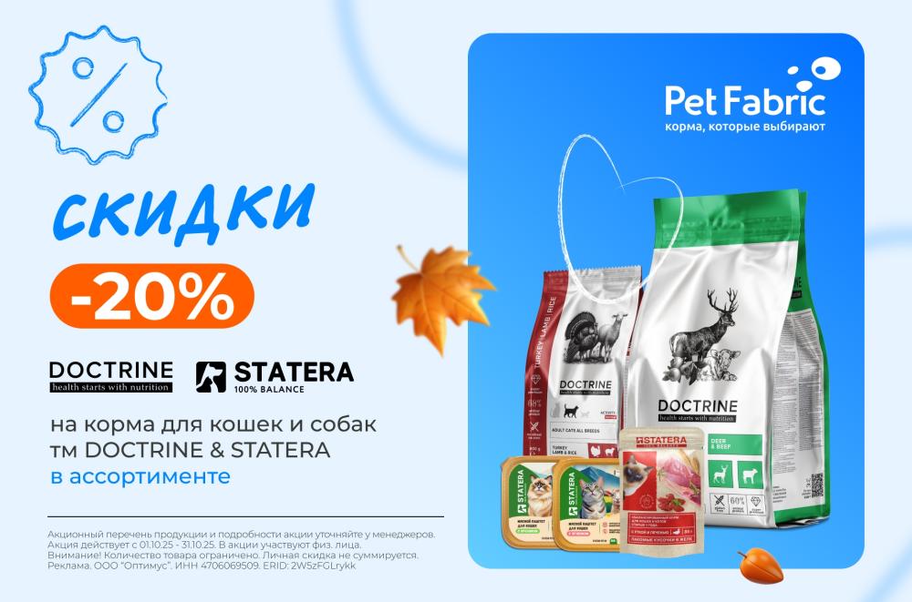 —20% скидка на сухие корма DOCTRINE и STATERA
