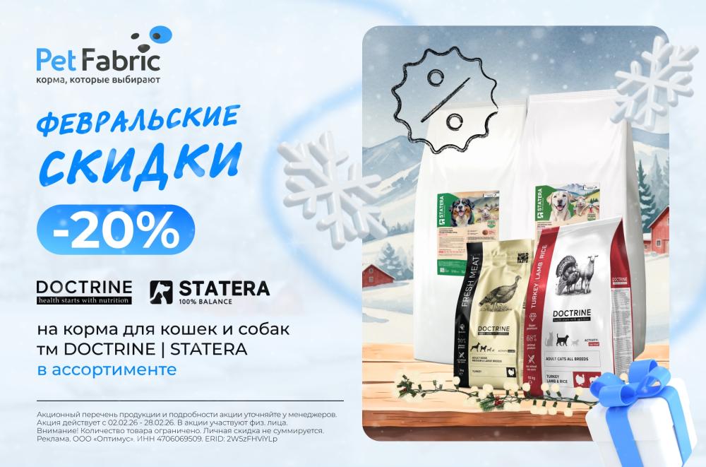 20% скидка на сухие корма STATERA и DOCTRINE весь февраль