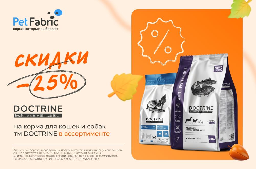 —25% скидка на сухие корма DOCTRINE