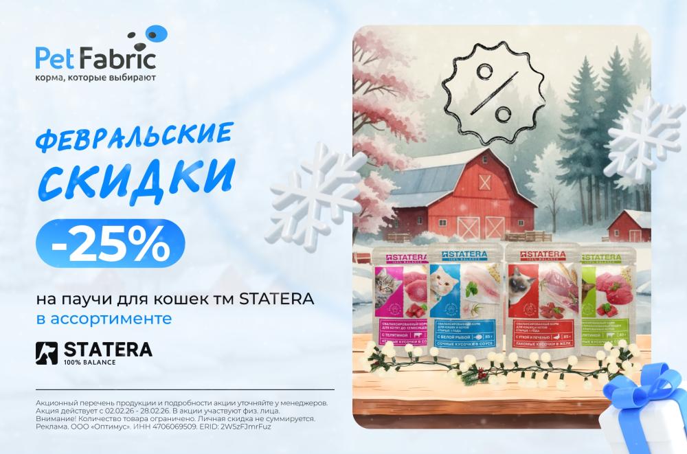 25% скидка на влажные корма STATERA весь февраль