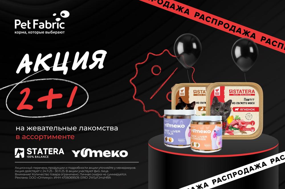 —Черная пятница! Акция 2+1 на лакомства и паштеты брендов YUMEKO и STATERA
