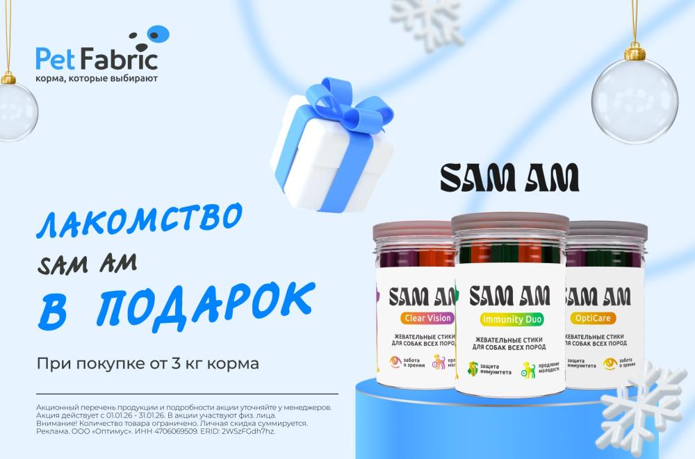 —Лакомство SAM AM в подарок при покупке корма от 3 кг